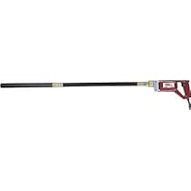 Tapered motor housing is from 3 1/4in. nearest the shaft to 2 1/2in. by the grip. Grip measures 1 1/4in. across the top. Vibrating head diameter: 35 MM. High frequency vibrations help settle concrete FAST. Vibration tube is 1 3/8in. diameter and 43 1/2in. long. Overall length with drill housing is 54in. Dependable 110 Volt 60 Hz. 5.3 Amp motor. 1-year limited warranty. HP: 3/4 Volts: 110 Shaft Length (in.): 43 1/2 Shaft Diameter (in.): 1 3/8 Overall Length (in.): 54